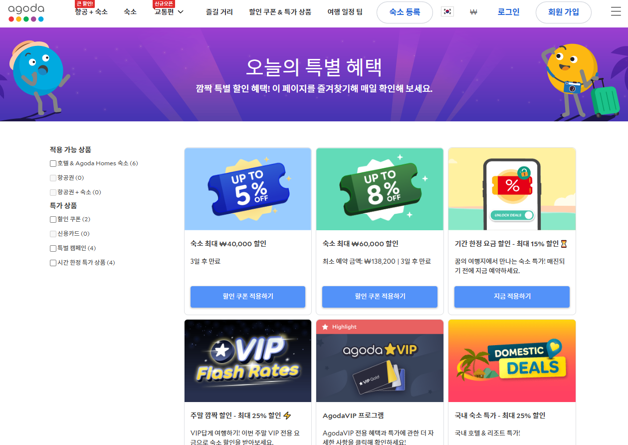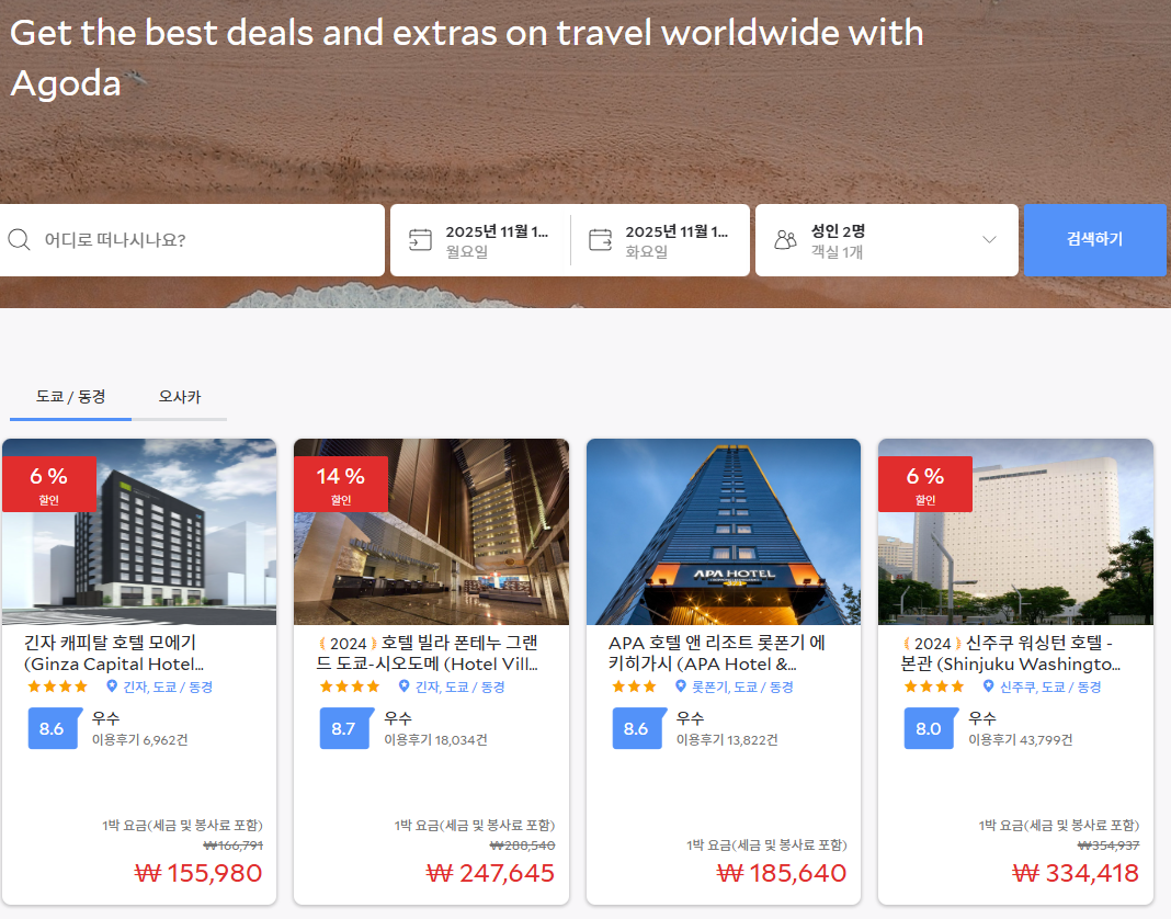 아고다(Agoda)는 전 세계 420만 개 이상의 숙소, 항공권, 렌터카, 액티비티를 예약할 수 있는 글로벌 여행 플랫폼입니다.