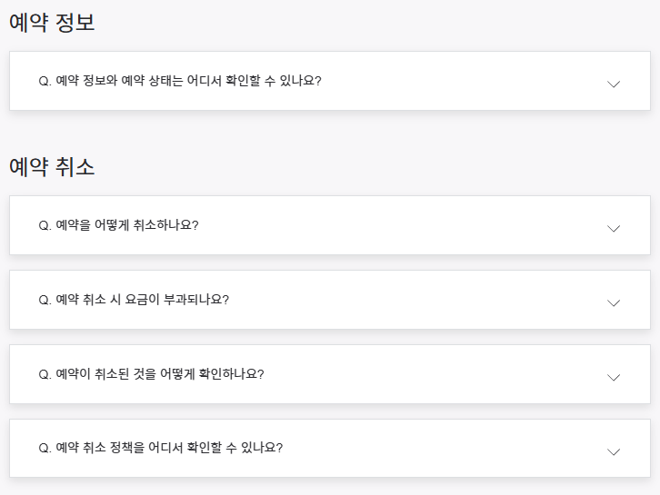 | 예약 취소가 안 돼요 | 예약 상세 화면 → ‘취소 정책’ 확인 → 고객센터 문의 |